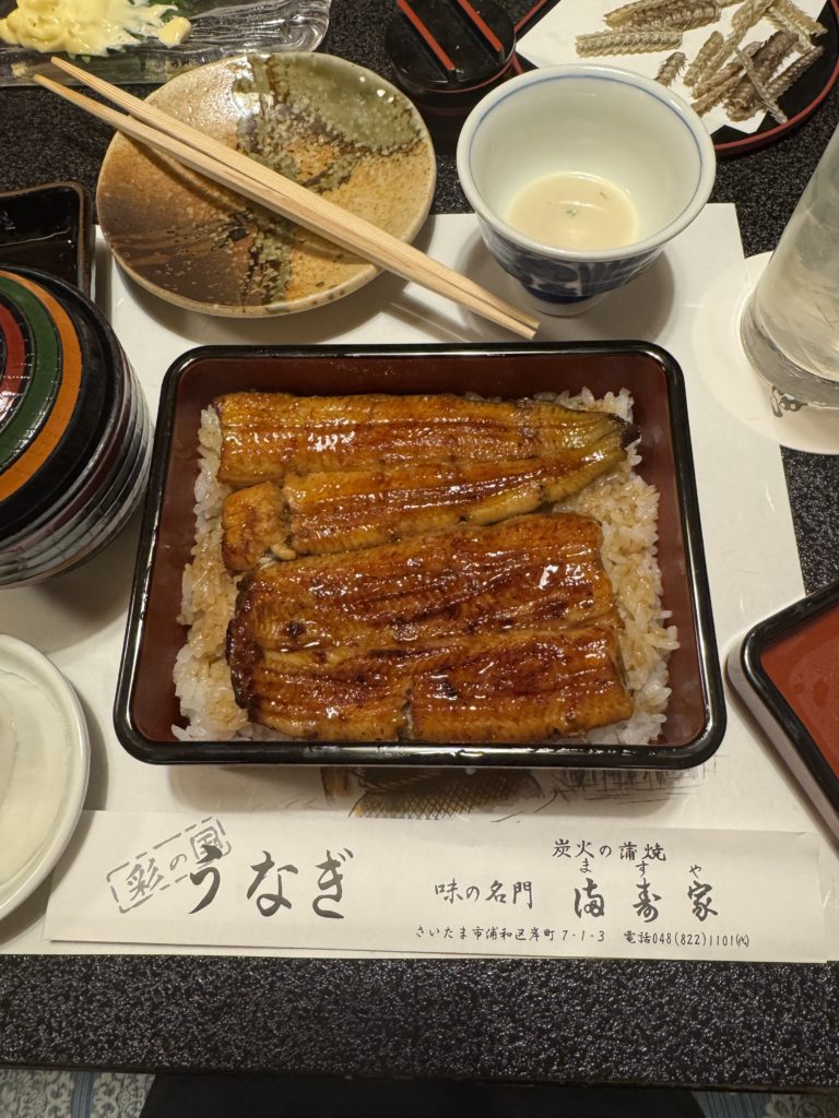 熊手を購入し記念撮影をしたあとは、ここ数年恒例になっている鰻へ。